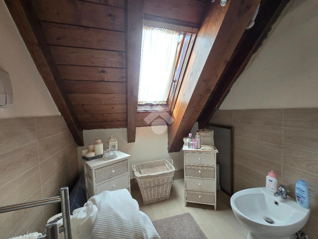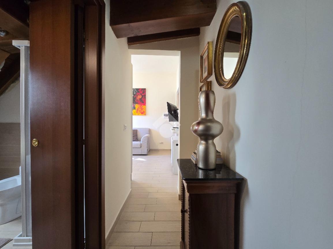 Soluzione immobiliare 'atipica mansardata' con tetto lamellare a vista presente in tutto l'appartamento tranne che nella zona del soggiorno( dove l'altezza raggiunge i 2,95 mt ca.), buona luminosità ( vasistas in tutti gli ambienti e finestra con avvolgibile elettrico nel soggiorno), completamente ristrutturata, climatizzatore UNICO ( che abbina design e tecnologia), abitabile da subito con una vetustà inferiore ai 10 anni.