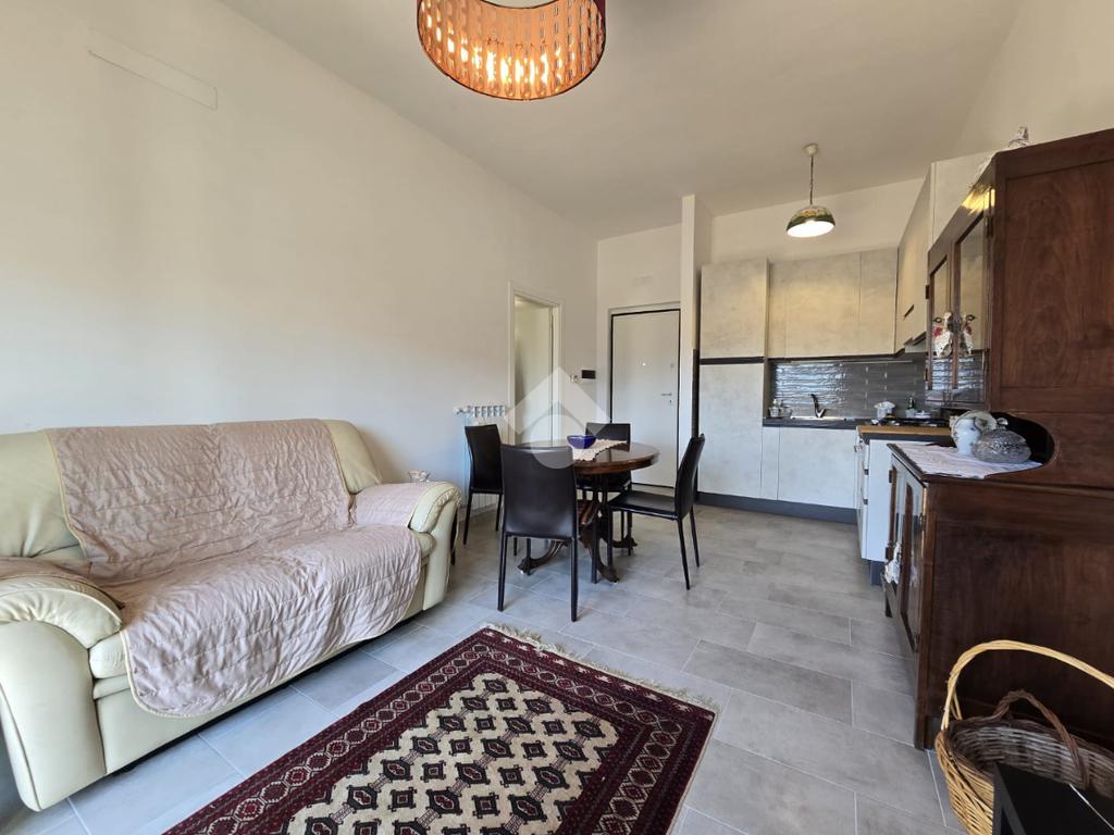 ZONA GIORNO: soggiorno moderno con pratico angolo cottura a vista caratterizzato da un'ampia finestra che inonda di luce naturale tutto l'ambiente e permette l'accesso al balcone a livello;
