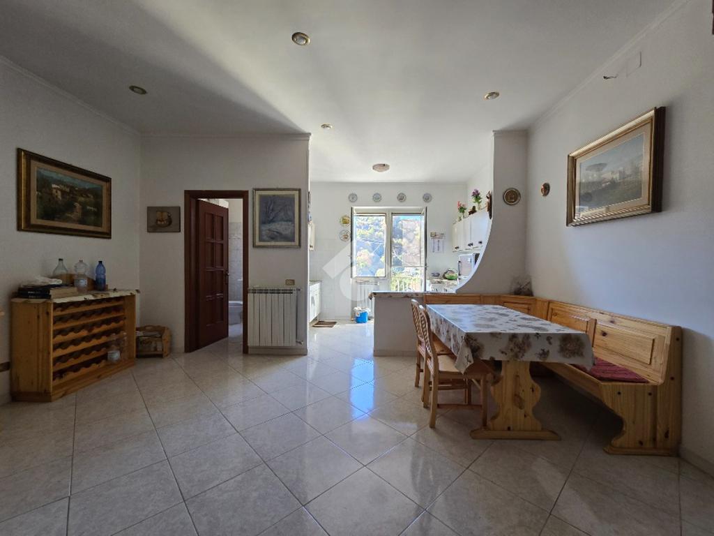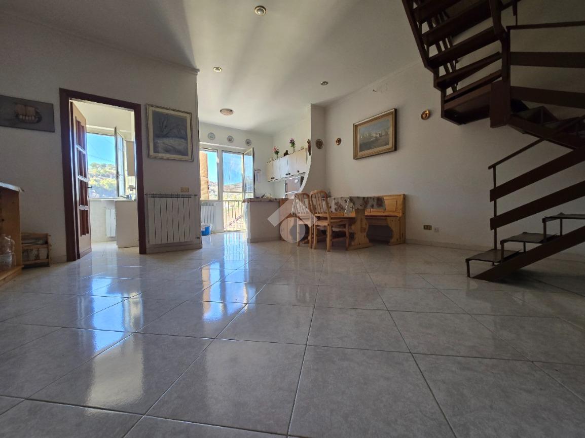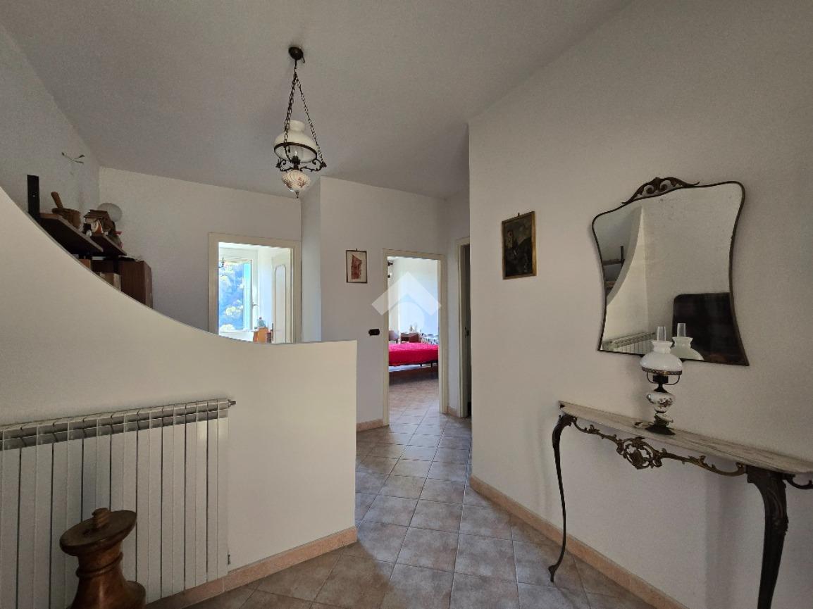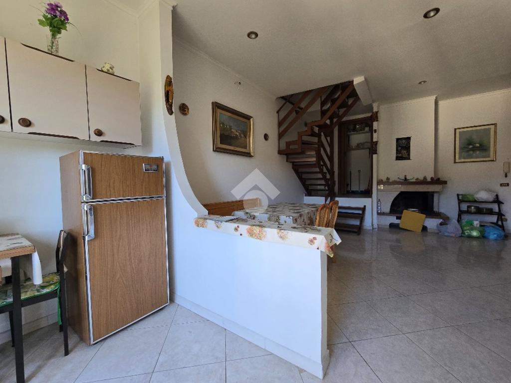 Il piano terra è costituito oltre che dal locale garage che ha sia entrata esterna che accesso interno al fabbricato, anche da un locale tecnico con riserva d'acqua ed autoclave e scala che conduce al piano primo dove, la zona living, è organizzata con un ampio open-space con camino, un cucinotto aperto ed un bagno ( finestrato con doccia). Le due finestre presenti nella zona giorno permettono una vista aperta e panoramica nonchè una buona illuminazione dei locali. L'ultimo piano dispone di un accesso interno dalla zona del soggiorno tramite una scala con struttura in ferro, ed un accesso autonomo con portone d'ingresso sulla stradina retrostante. La superficie è stata sfruttata con n. 2 camere da letto ( ambedue esposte a sud), un disimpegno ed un bagno ( finestrato con vasca). Immobile dotato di impianto di riscaldamento a gas metano ( da sostituire la caldaia). Le condizioni interne permettono una vivibilità immediata.