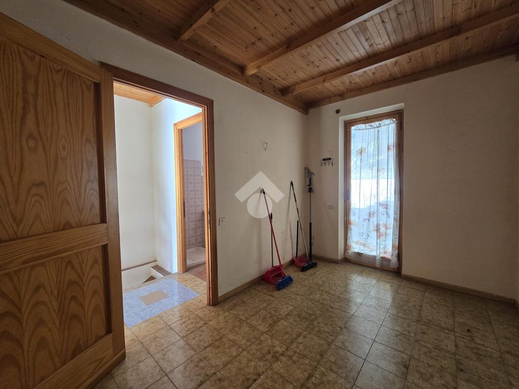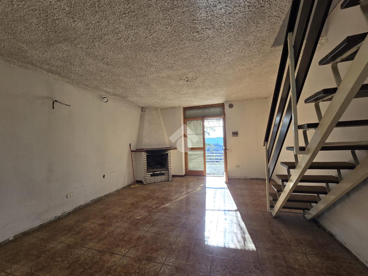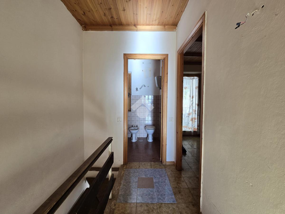 Il livello più basso presenta un locale soggiorno con camino in posizione angolare ed un angolo cottura a vista; nella zona notte sono presenti due camere da letto ( una matrimoniale, l'altra singola) con un bagno finestrato. La camera da letto matrimoniale ha uscita diretta su balcone a livello. Porte in legno con infissi monovetro, pavimento in ceramica. Non dispone di riscaldamento autonomo, ma la zona è servita da gas metano a cui, volendo, ci si puo' allacciare.
